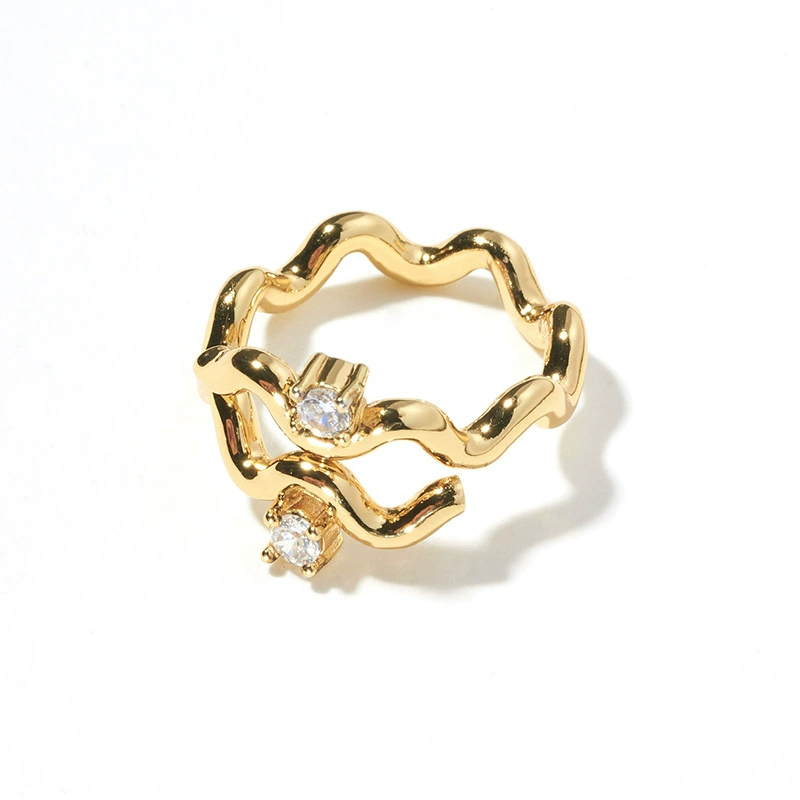 A striking three-dimensional structure adds depth and dimension, creating a visually captivating piece that stands out from ordinary rings. The geometric lines and raised contours mimic the allure of high-end jewelry, while maintaining a lightweight, comfortable fit. - Glistening Zircon Accents